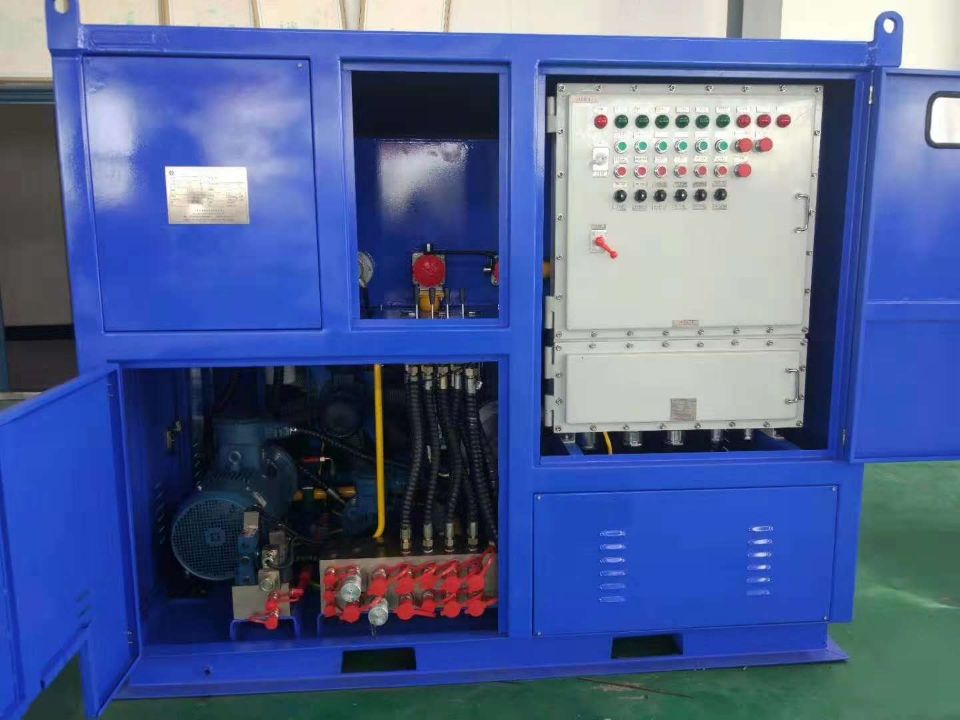 液壓站是由液壓泵、驅(qū)動用電動機、油箱、方向閥、節(jié)流閥、溢流閥等構(gòu)成的液壓源裝置或包括控制閥在內(nèi)的液壓裝置。按驅(qū)動裝置要求的流向、壓力和流量供油,適用于驅(qū)動裝置與液壓站分離的各種機械上,將液壓站與驅(qū)動裝置(油缸或馬達)用油管相連,液壓系統(tǒng)即可實現(xiàn)各種規(guī)定的動作。液壓站一般是為大中型工業(yè)生產(chǎn)的機械運行提供潤滑、動力的機電裝置。使用液壓系統(tǒng)是由于液壓系統(tǒng)在動力傳遞中具有用途廣、效率高和構(gòu)造簡單